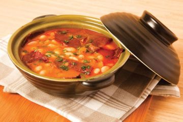 Güveçte pastırmalı kuru fasulye