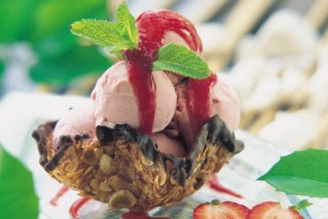 File badem sepetinde çilekli dondurma