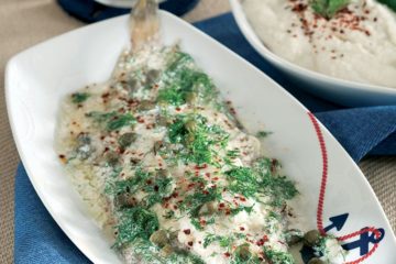 Kırmızı soğanlı ve kaparili mezgit fileto