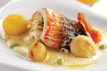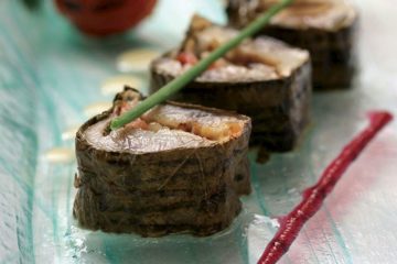 Asma yaprağında harissa soslu barbun balığı