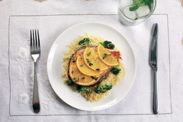 Brokolili bulgur ve portakallı somon