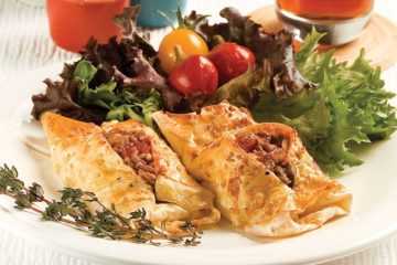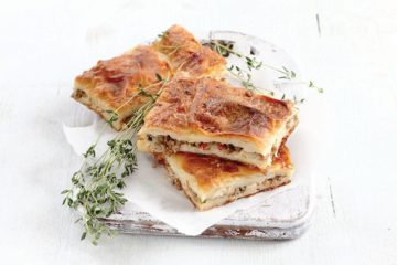 Kıymalı ve kaşar peynirli tepsi böreği