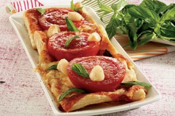 Kızarmış domatesli ve sarımsaklı tart