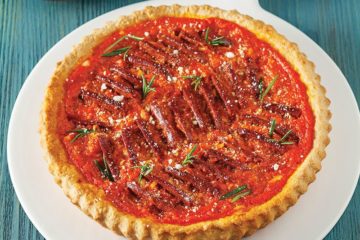 Közlenmiş kırmızı biber dolgulu sucuklu tart