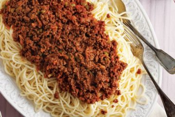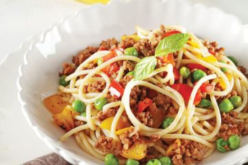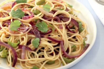 Kırmızı soğanlı ve biber çekirdekli spagetti