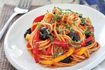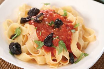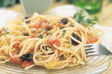 Zeytinli ve domates soslu spagetti