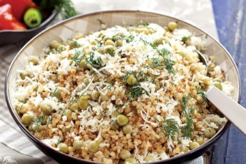 Eski kaşar peynirli ve bezelyeli bulgur pilavı