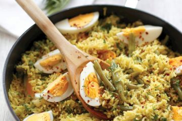 Taze fasulyeli ve yumurtalı pirinç pilavı