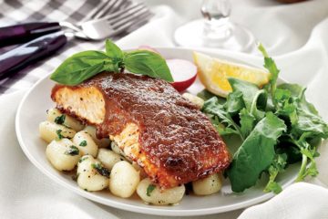 Hardal soslu somon ve fesleğenli gnocchi