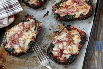 Mor soğanlı patlıcan pizzaları