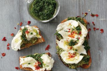 Mozzarella ve pestolu dilim ekmek