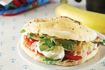 Mozzarella peynirli, közlenmiş domatesli sandviç