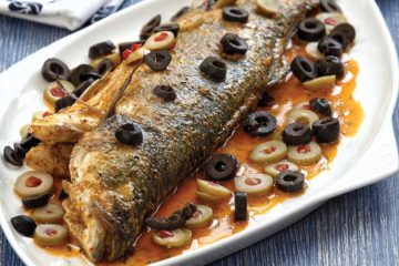 Zeytin soslu levrek buğulama