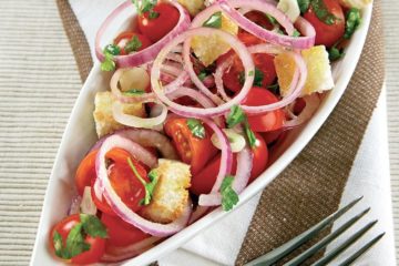 Ekmekli ve domatesli soğan salatası