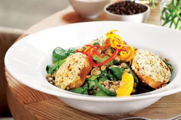 Keçi peynirli, mercimekli, ıspanak salatası
