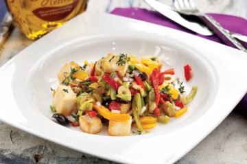 Krutonlu ve renkli köz biberli salata