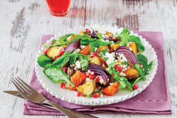 Nar taneli ve kırmızı soğanlı roka salatası