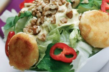 Peynir paneli ve hardal soslu salata
