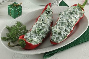 Biber yatağında yoğurtlu ıspanak salatası