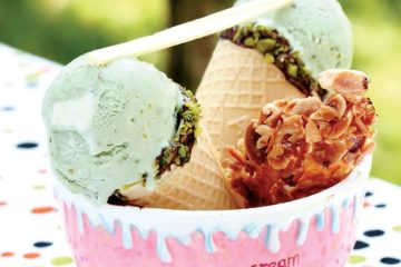 Brownie ile vanilyalı ve fıstıklı dondurma