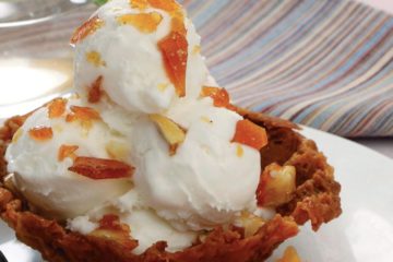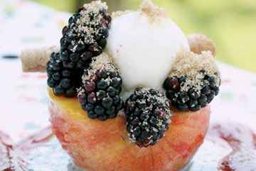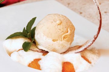 Tarçınlı dondurmalı ve lor peynirli köpüklü şeftali