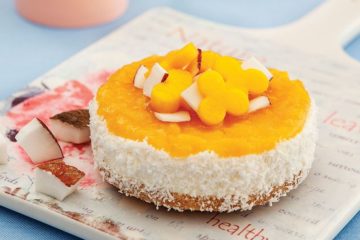 Mango soslu ve Hindistan cevizli cheesecake