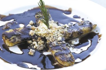 Banna asada (Fırında çikolata ve farofa soslu muz)