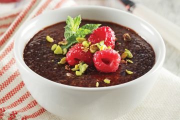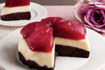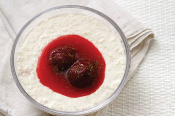 Kırmızı erik soslu ve kremalı pirinç tatlısı