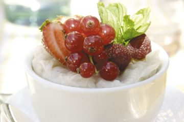 Sakızlı ve Frambuaz Soslu Muhallebi