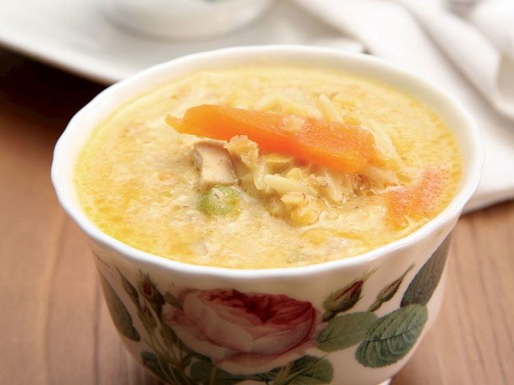 - Çorbanın suyundan birkaç kaşık alıp kasenin içine ilave edin..