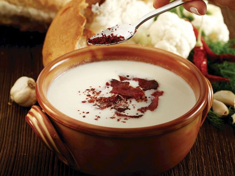Pastırmalı ve kremalı karnabahar çorbası
