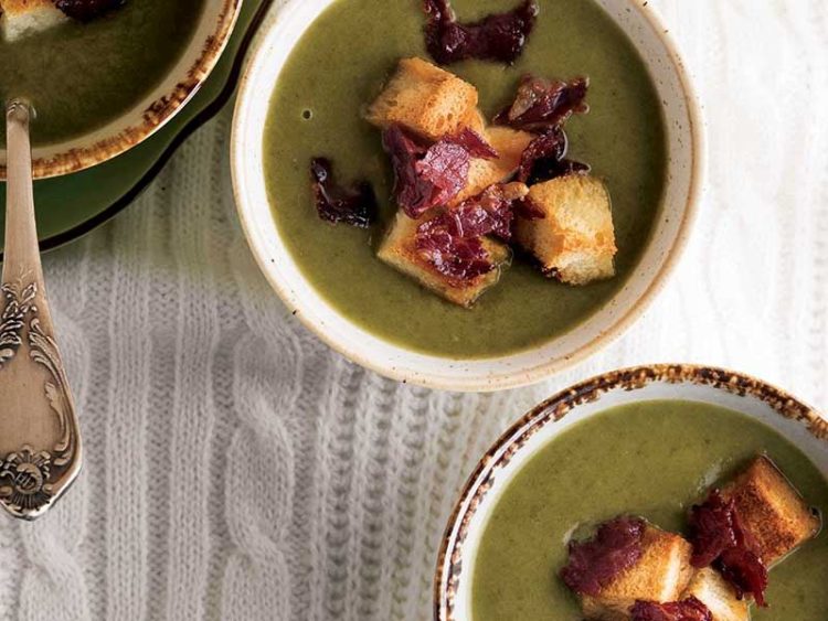 - Çorbayı servis kaselerine paylaştırıp üzerine pastırma serpin ve krutonlar ile sıcak servis yapın..