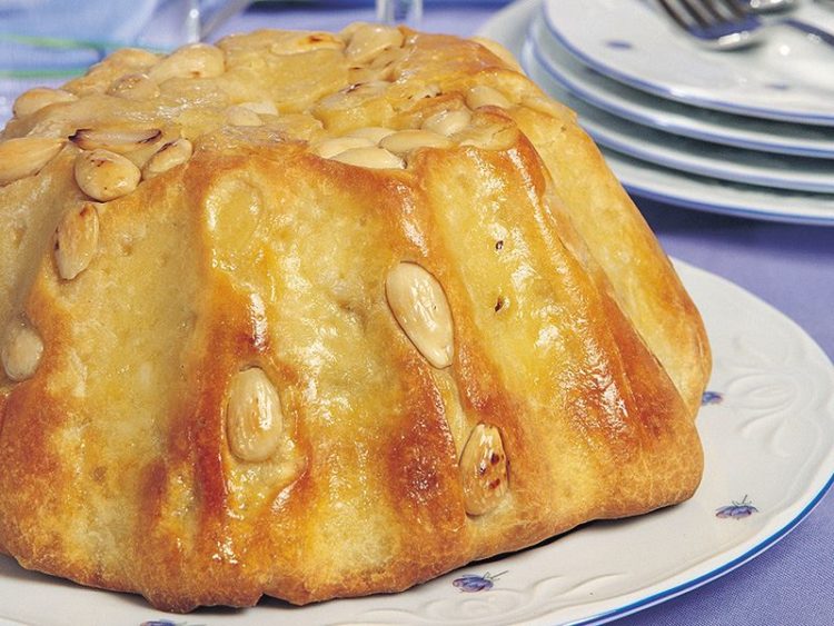 Dilimli bir kek kalıbını kalan margarinle yağlayıp buzdolabında biraz bekletin.. - Bademleri kalıbın dibine ve kenarlarına dizip bastırarak yapışmasını sağlayın..