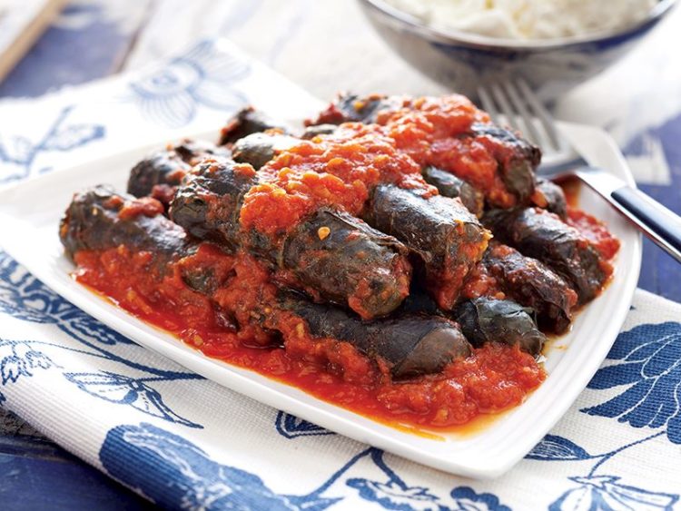 Domates soslu bulgurlu pazı sarması