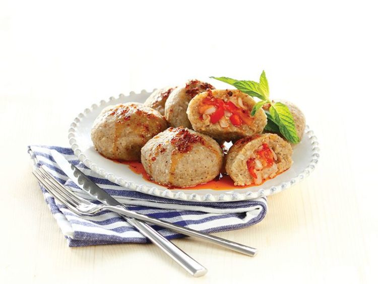 - Ortalarına biberli harçtan paylaştırıp yuvarlayın..
