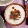Derin bir kabın içine yoğurt ve ayran kıvamını alacak kadar su ilave ederek karıştırın..