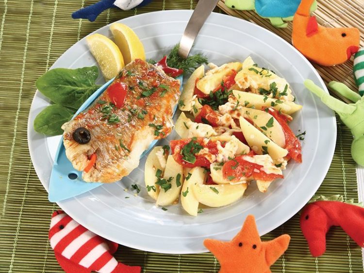 - Balık filetonun üzerini çocuğunuzla birlikte zeytin, kırmızı dolmalık biber, maydanoz ve dereotu ile balık şeklinde süsleyebilirsiniz..