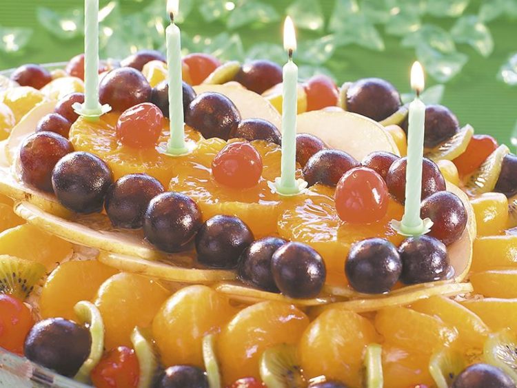 - Üzerini kiraz şekerlemesi ve taze meyvelerle süsleyin..