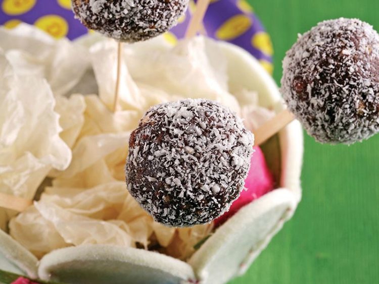 - Karışımdan parçalar kopartıp elinizde yuvarlayın ve hindistan cevizine bulayın..