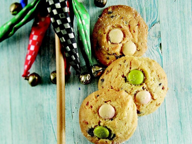 - Yağlı kağıt serili tepsiye aralıklı olarak dizip üzerlerine kaşığın sırtıyla hafif bastırın ve renkli şekerlemeler yapıştırın..