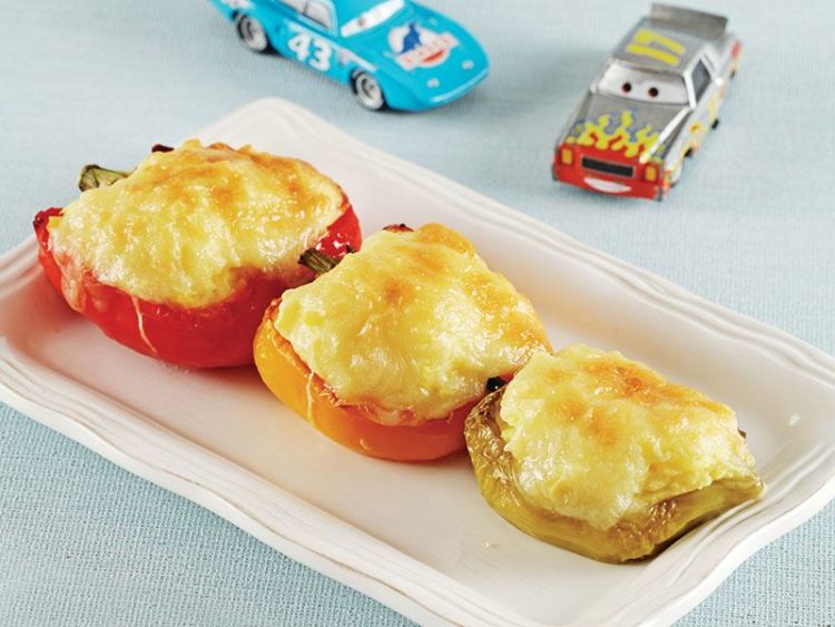 - Önceden ısıtılmış fırında biberler yumuşayana ve patates püresinin üzeri kızarıncaya kadar pişirin..
