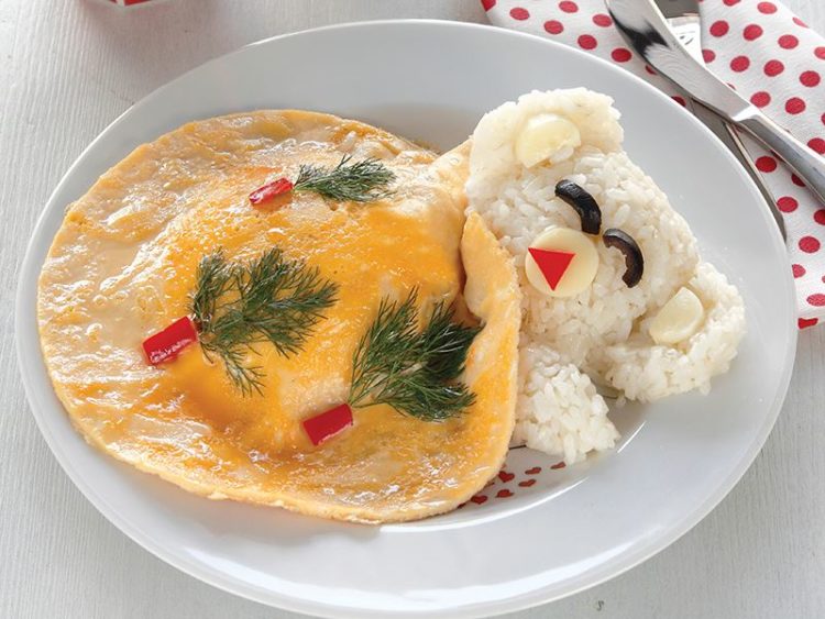 - Servis tabağına pilavdan alıp ayıcık şeklini verin..
