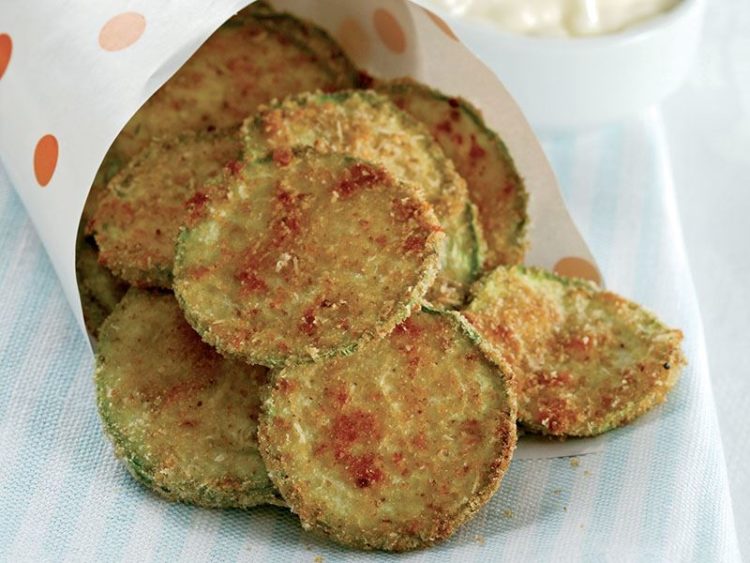 - Kabak cipslerini yanında sarımsaklı yoğurt veya domatesli bir sosla servis yapın..