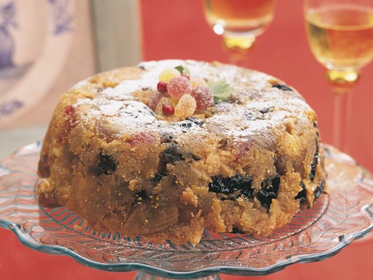 - 50 gr kiraz şekerlemesi 250 gr kuru incir 100 gr kuru kayısı 1 limon 1 portakal 100 gr kuru erik 3 çorba kaşığı konyak 100 gr margarin 1 çay bardağı tozşeker 1 elma 2 yumurta 25 gr file badem 2 kahve fincanı un 85 gr ufalanmış ekmek içi 1’er çay kaşığı zencefil ve tarçın Yarım çay kaşığı muskat 1 çorba kaşığı pudraşeker