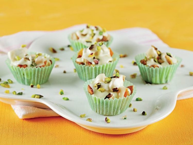 - Çikolata ve kuru meyveleri iyice karıştırıp muffin kağıtlarına paylaştırın..