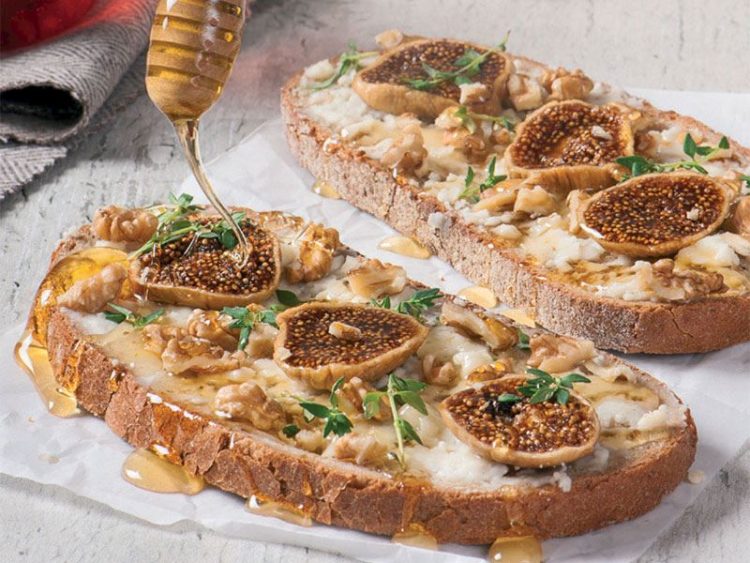 - Kızarmış esmer ekmeklerin üzerine bir çatal yardımıyla ezdiğiniz keçi peynirini paylaştırın..