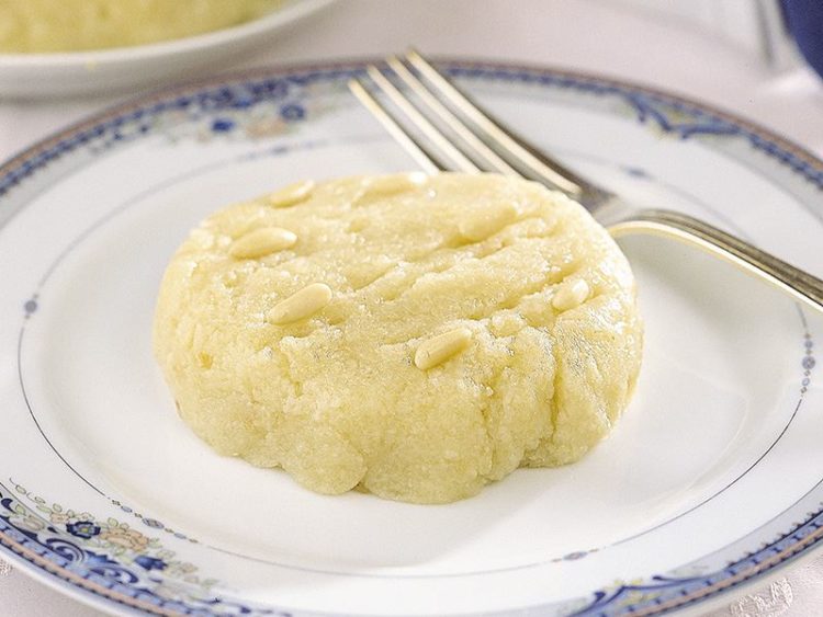 - Helvayı servis tabaklarına alıp üzerini çam fıstığı ile süsleyerek servis yapın..