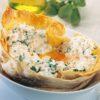 - Ortasını havuz şeklinde açıp margarin, süt ve rendelenmiş beyaz peyniri ekleyin..