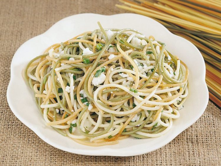 - 1 paket üç renkli makarna 100 gr beyaz peynir 3-4 dal maydanoz 3-4 taze soğan sapı 3 çorba kaşığı zeytinyağı
