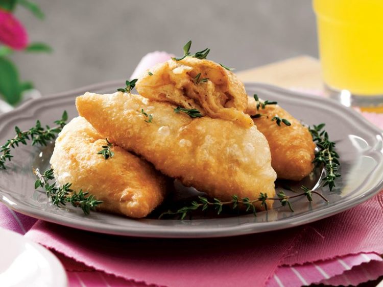 - Ortasına patatesli ve peynirli harçtan koyup yarım ay şeklinde kapatın..